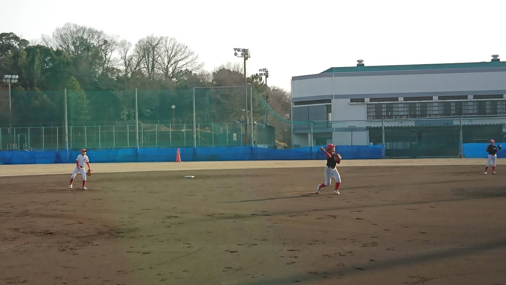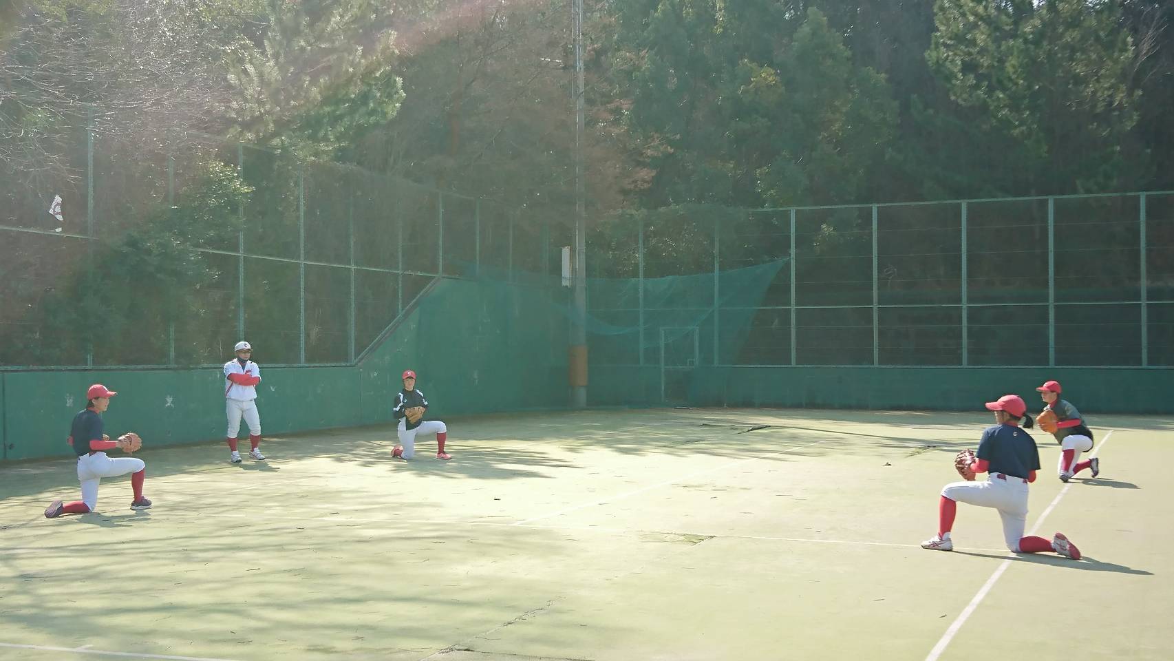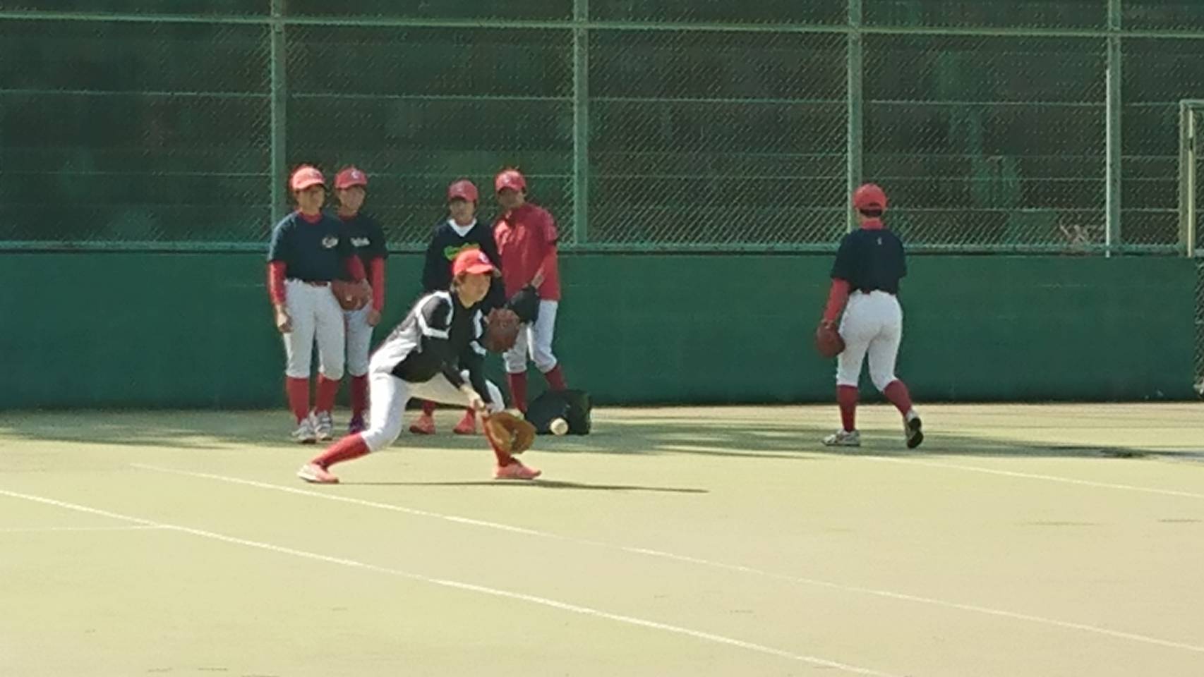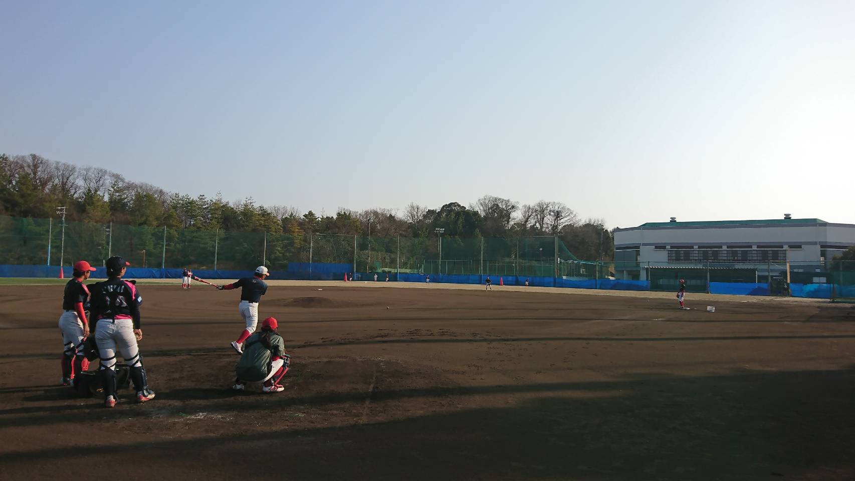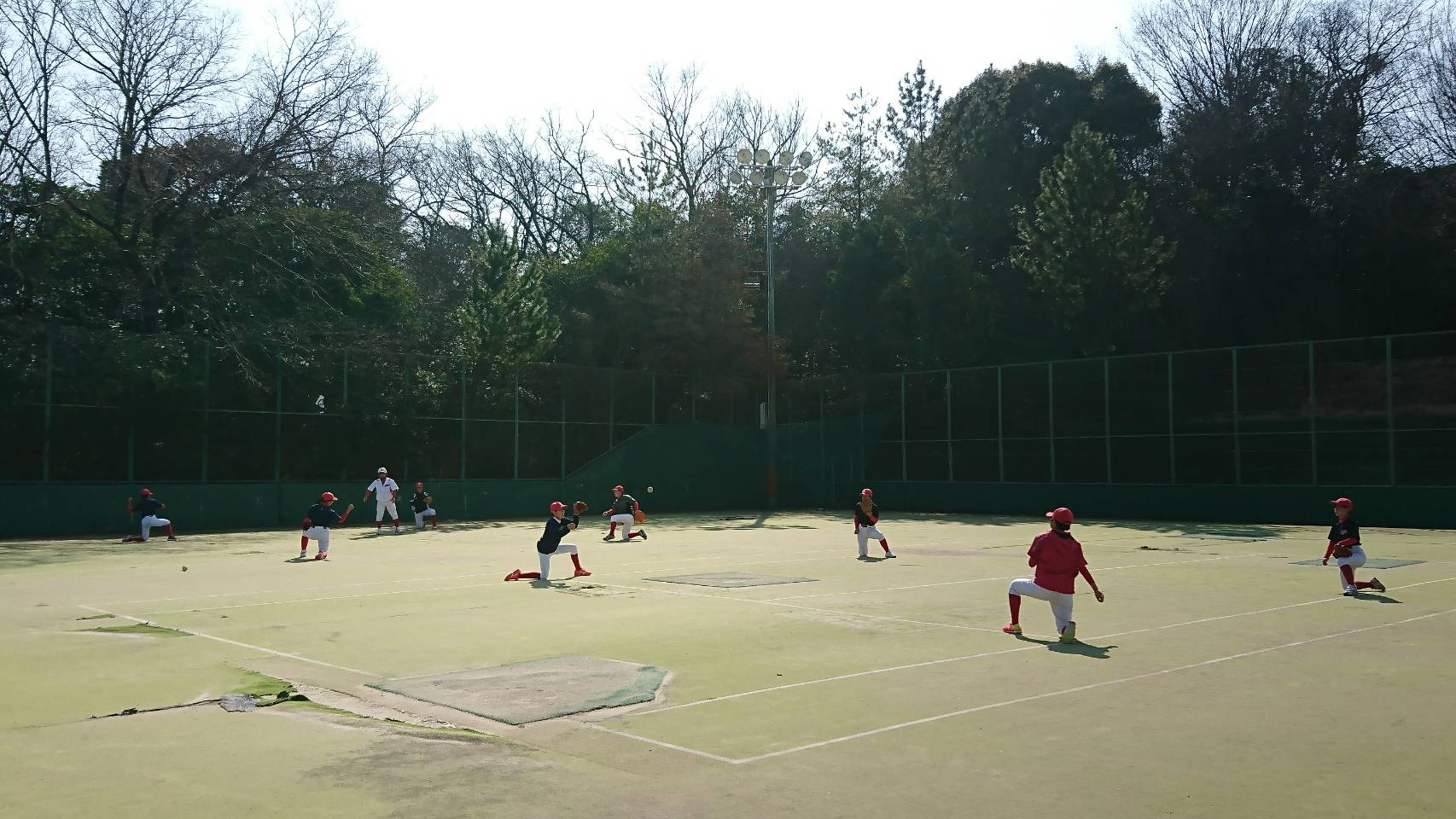 午前中アップの後は内外野で別れて、バッティング練習と守備練習に汗をかきました❗